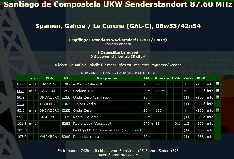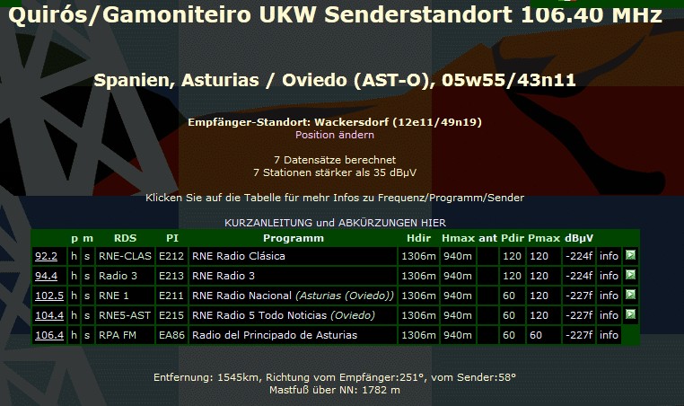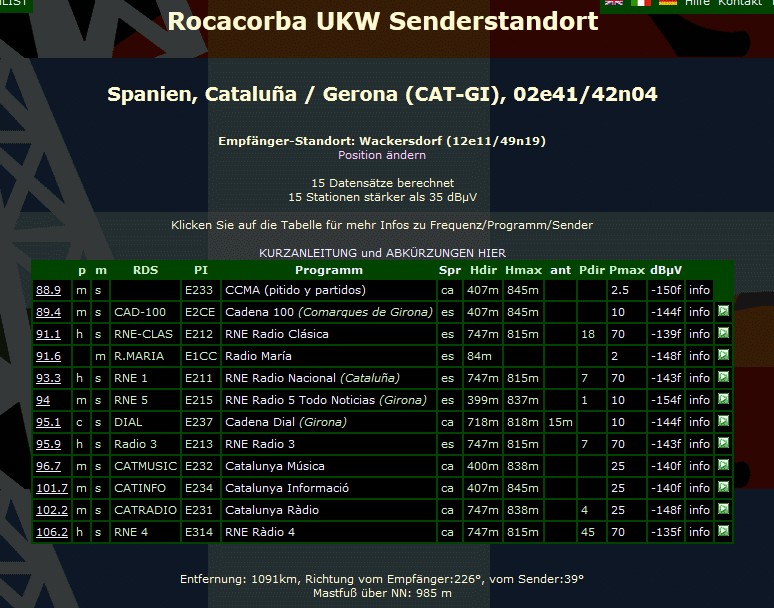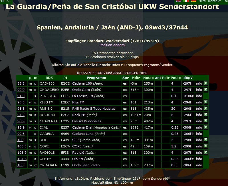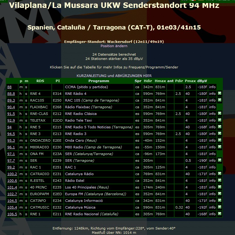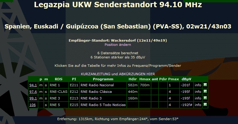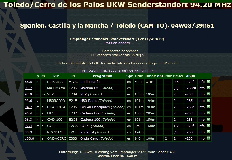 Spanien zweimal die 94.0 benutzt. Beide liegen ungefähr in
